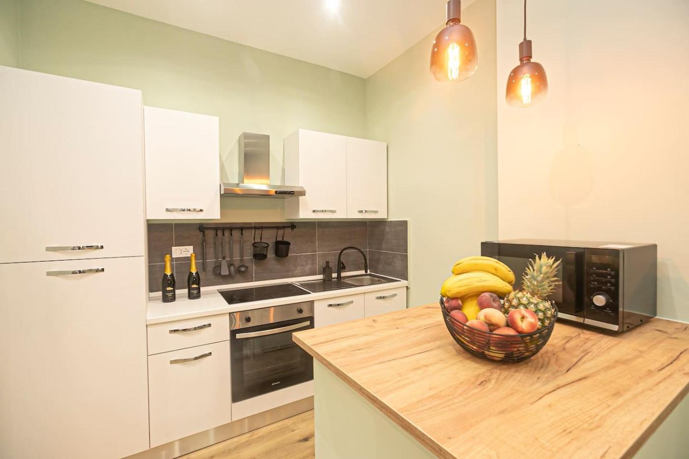 Two-Bedroom Apartment. Featuring a private entrance, this air-conditioned apartment comprises 1 living room, 2 separate bedrooms and 1 bathroom with a walk-in shower and a bidet. Meals can be prepared in the kitchen, which is equipped with a stovetop, a refrigerator, an oven and a microwave. The spacious apartment provides a washing machine, soundproof walls, a tea and coffee maker, a seating area, as well as a flat-screen TV with streaming services. The unit offers 3 beds.